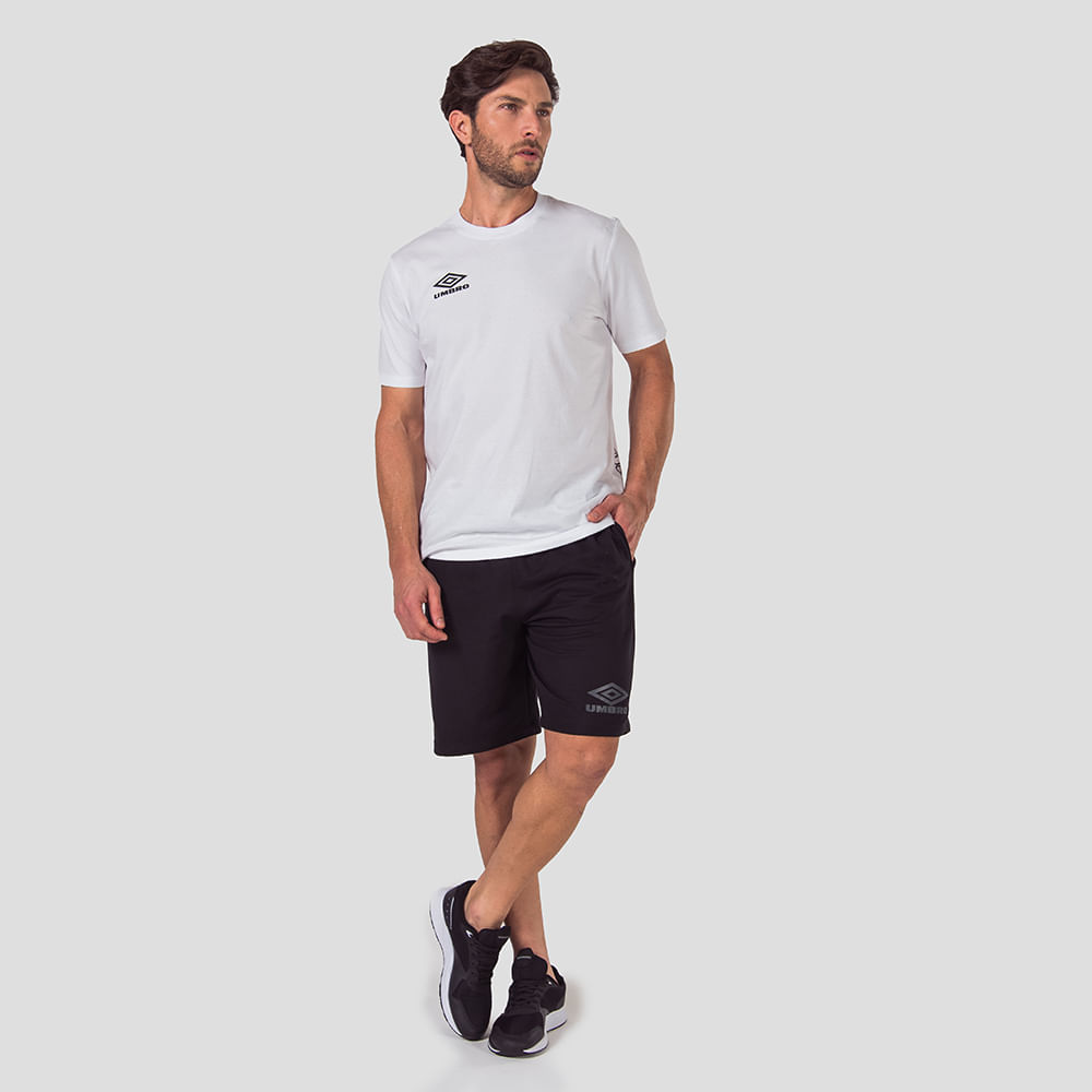 Bermuda confeccionada em mix de algodão e poliéster e cós com elástico e cordão interno para melhor ajuste. Possui bolso nas laterais e barra com abertura lateral. Logo Diamante Umbro em termo transfer.