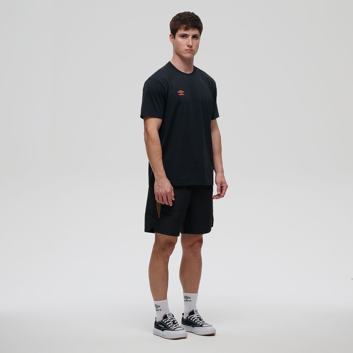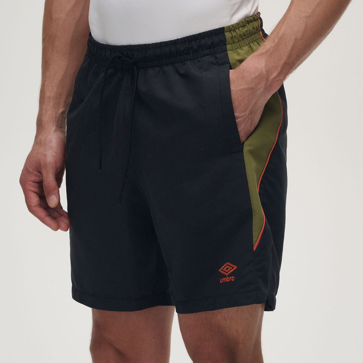 A Bermuda Masculina Umbro F.C. combina estilo e funcionalidade para o dia a dia esportivo. Com recortes modernos e o Diamante Umbro na parte frontal, a bermuda destaca-se pelo visual sofisticado. Confeccionada em tecido plano a partir de fibras recicladas, possui cordão para ajuste, recortes laterais e cós com elástico, garantindo um ajuste perfeito e liberdade de movimento, seja para treinar ou para um look casual.