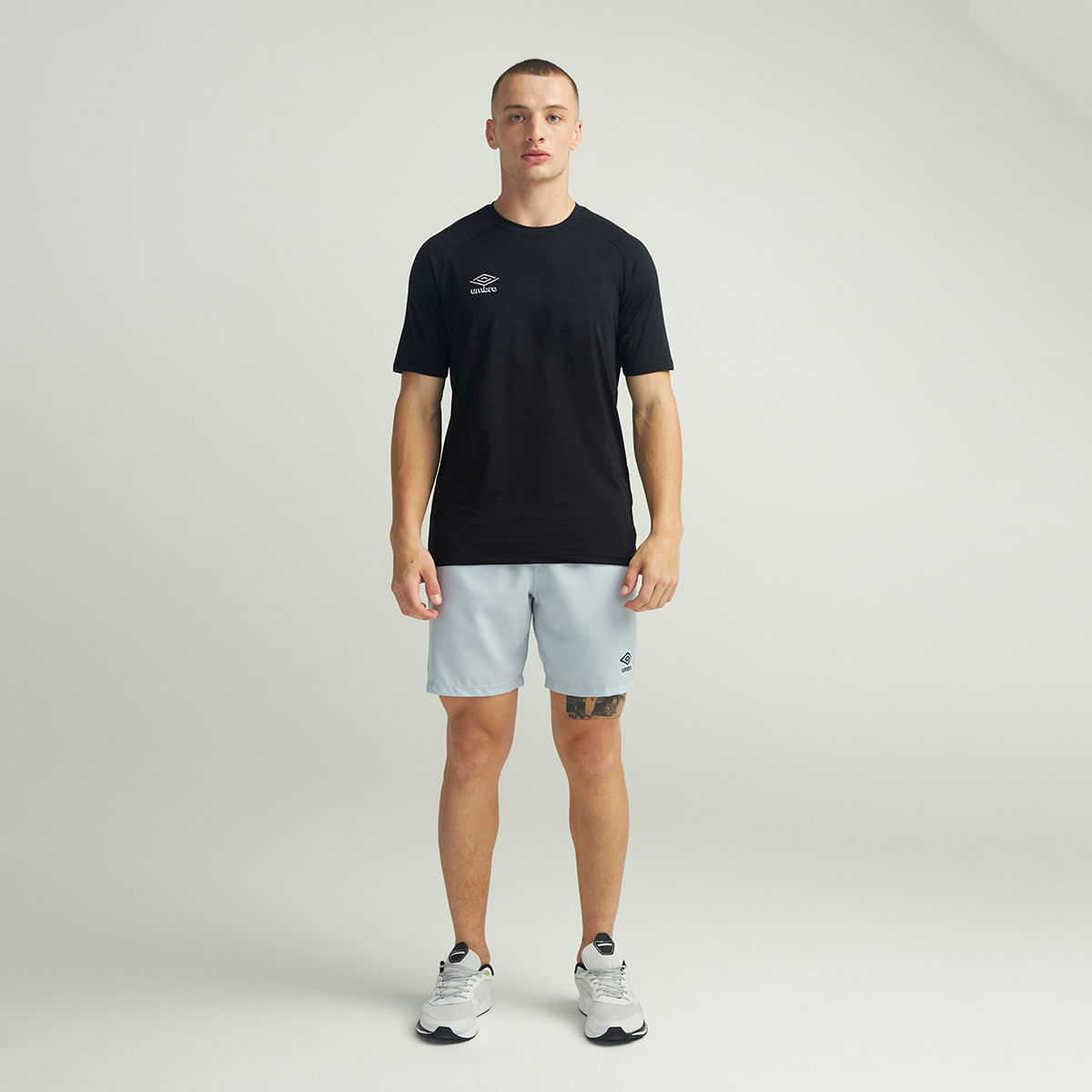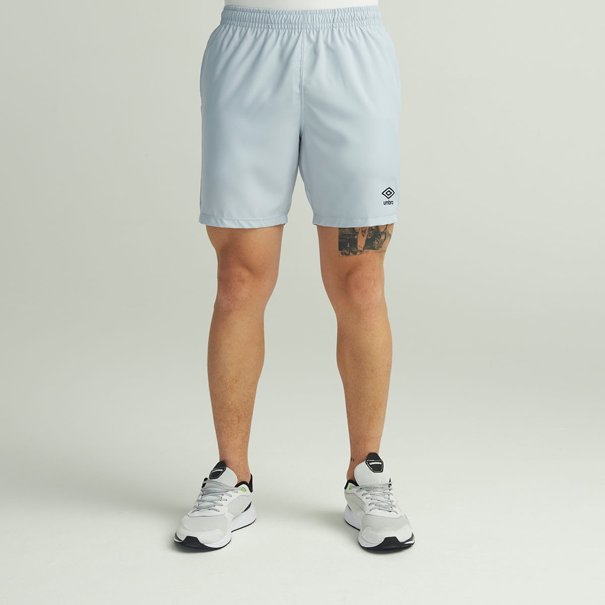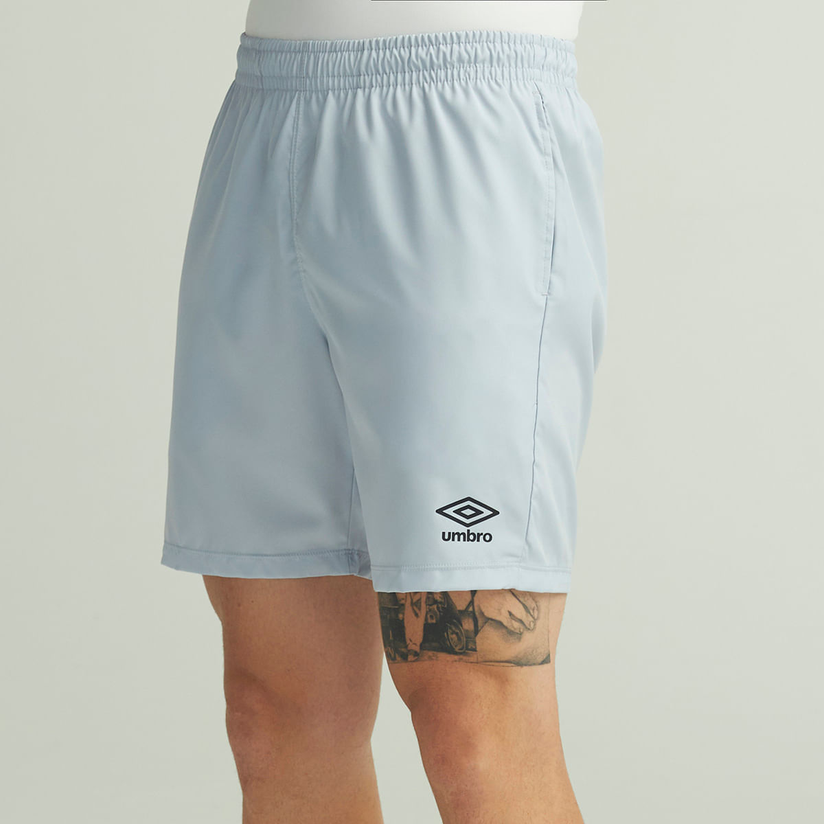 Bermuda masculina confeccionada em tecido plano de poliéster. Possui cós tombado com elástico e cordão de ajuste com amarração interna, bolsos laterais e logo Umbro em termo aplicado na parte frontal esquerda próximo à barra.
