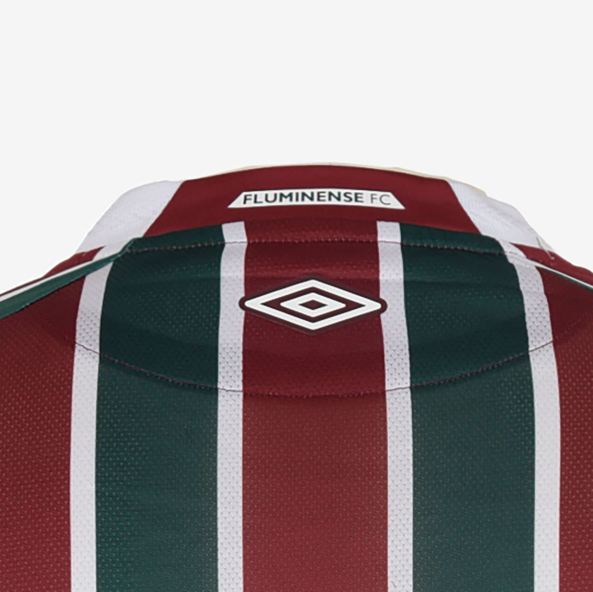 Vista a tradição e a glória com a Camisa do Fluminense Oficial 1 2025 Jogador Masculina Umbro! Com as icônicas cores verde, branco e grená em listras verticais, a nova armadura celebra as raízes do clube e sua presença no Mundial de Clubes 2025. Destaque para a gola e mangas reforçadas, além da etiqueta especial "Das Laranjeiras para o mundo", exaltando a história do Fluzão.