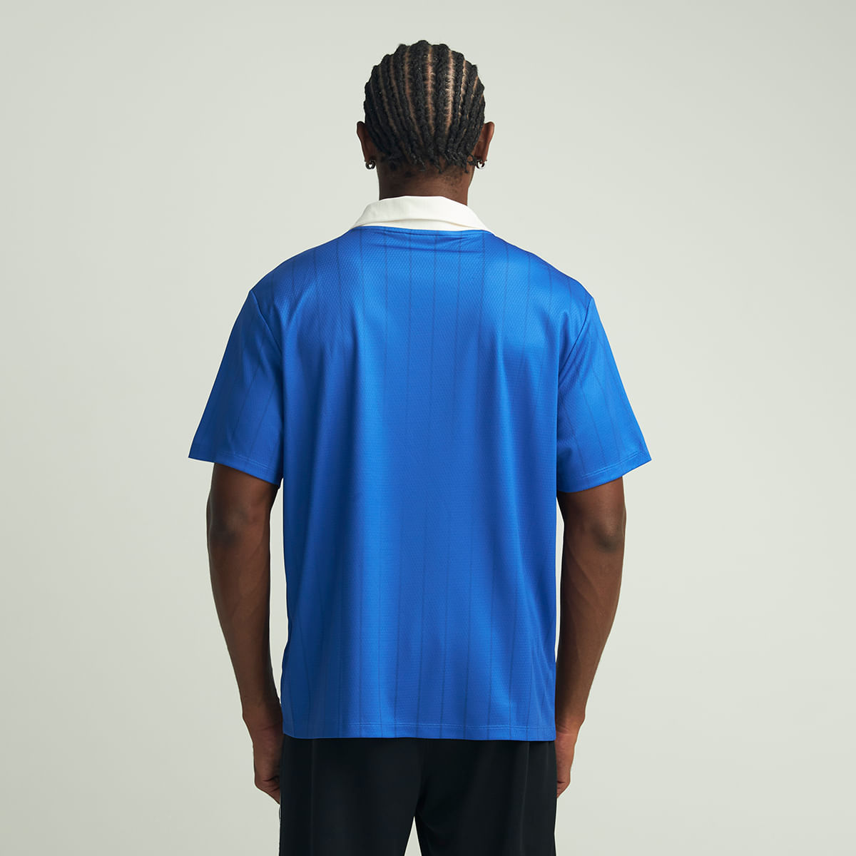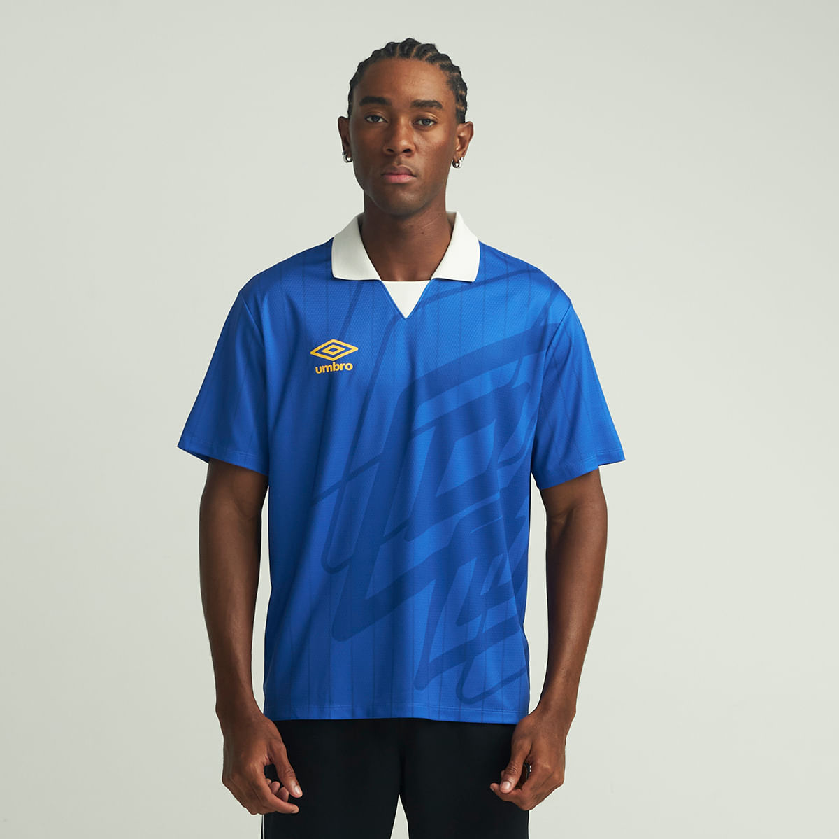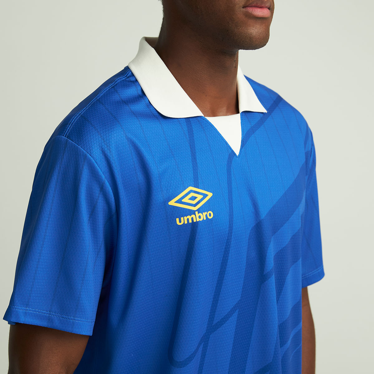 Camisa masculina confeccionada em poliéster na modelagem regular fit. O modelo apresenta design jersey com gola polo e peitilho em retilínea, sendo inteiramente estampado por sublimação no corpo e nas mangas. O acabamento da barra possui pesponto de duas agulhas para garantir maior resistência. Conta com o logo Umbro aplicado em material termocolante na parte frontal.