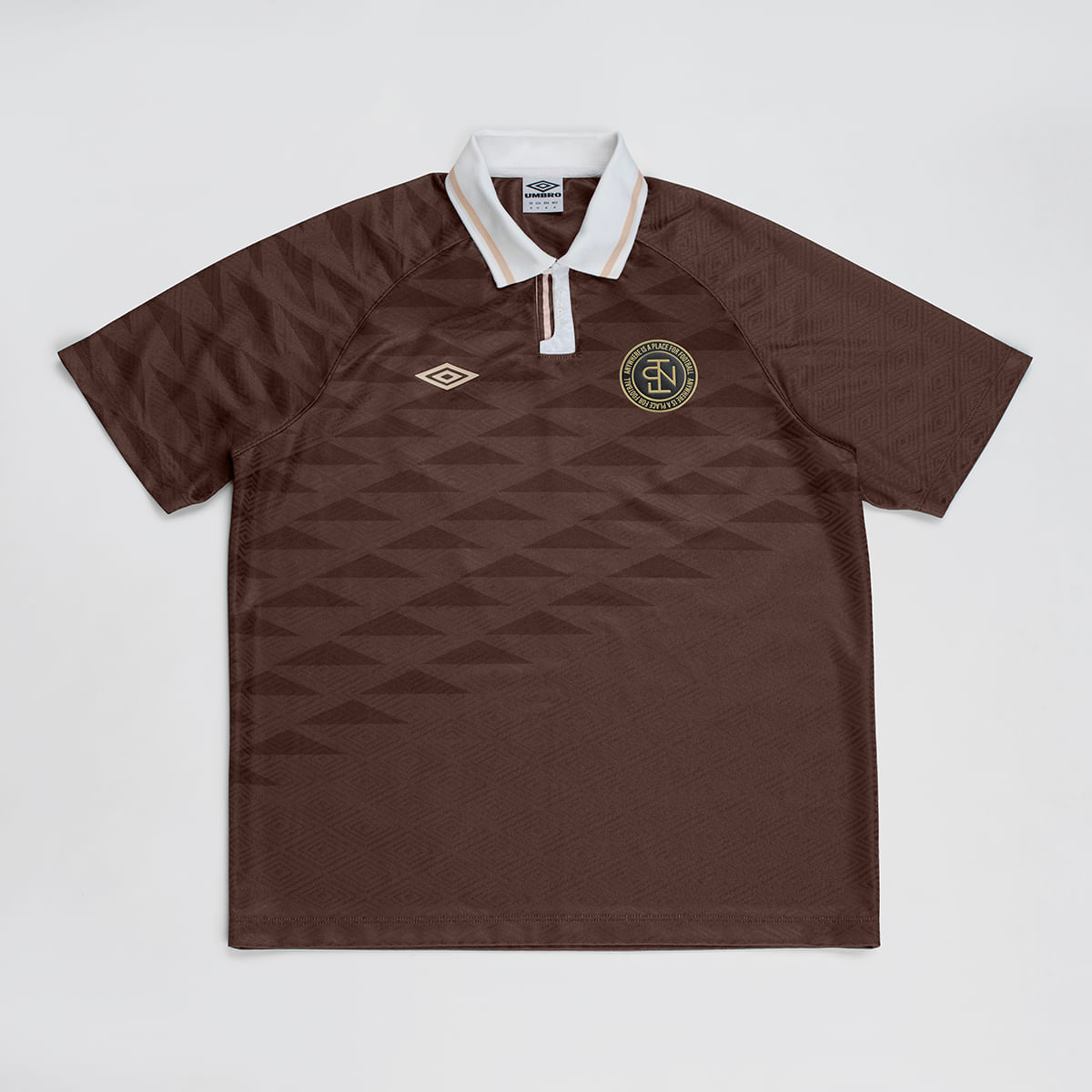 Logo Umbro aplicado em destaque, celebrando mais de 100 anos de história da marca.