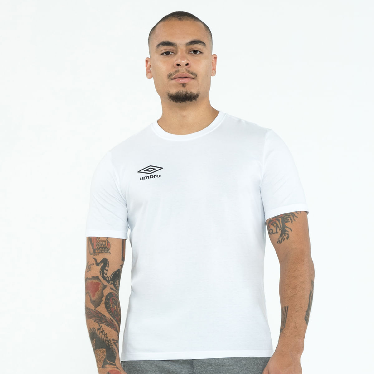 Camiseta masculina confeccionada em meia malha 100% algodão, que garante conforto e versatilidade. Com modelagem regular e gola careca em ribana, traz a assinatura da marca com o logo Umbro na parte frontal.
