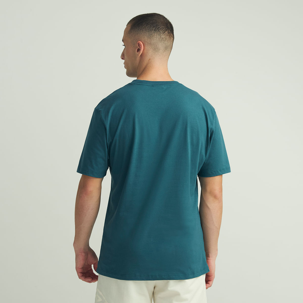Camiseta masculina feita em meia malha de algodão. A peça possui modelagem relax com cavas deslocadas, gola careca em ribana e maxi logo Umbro em silk na parte frontal.