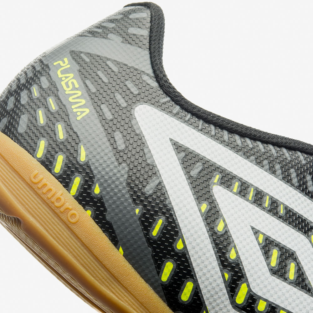 Com um visual moderno e arrojado, a Chuteira Futsal Umbro Plasma exibe serigrafia em degradê com grafismos autênticos. O material texturizado presente no cabedal auxilia o jogador a ter maior controle de bola dentro da quadra.