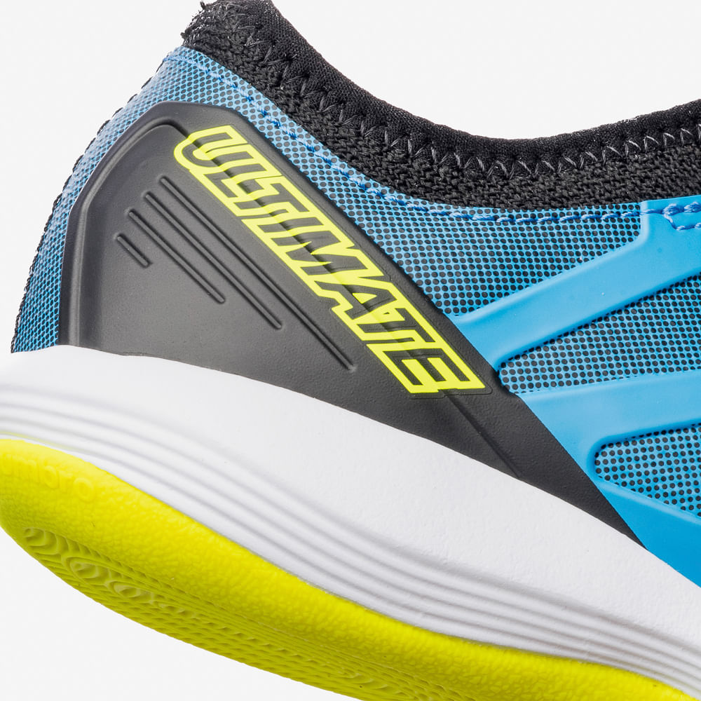A Chuteira Futsal Umbro Ultimate Jr combina estilo e desempenho para os jovens jogadores, seguindo o design do modelo adulto. O cabedal assimétrico em material laminado emborrachado liso oferece toque macio, enquanto as janelas em alta frequência adicionam textura. Possui calce tipo meia em tecido com elastano, grafismo camuflado geométrico e palmilha em EVA forrado. O solado de borracha antiderrapante com entressola em EVA garante conforto e tração nas quadras.