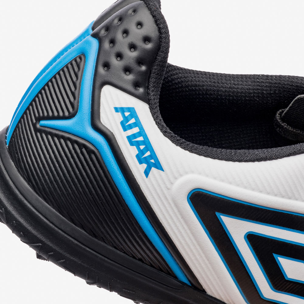 A Chuteira Society Umbro Attak III combina resistência e conforto para jogadores que buscam desempenho em gramados sintéticos. Seu cabedal frequenciado oferece ajuste anatômico e maior durabilidade, enquanto o novo material sintético garante leveza e flexibilidade. A palmilha X-Comfort proporciona amortecimento adicional para mais conforto. O solado em borracha assegura excelente aderência e tração, permitindo maior estabilidade nos movimentos.