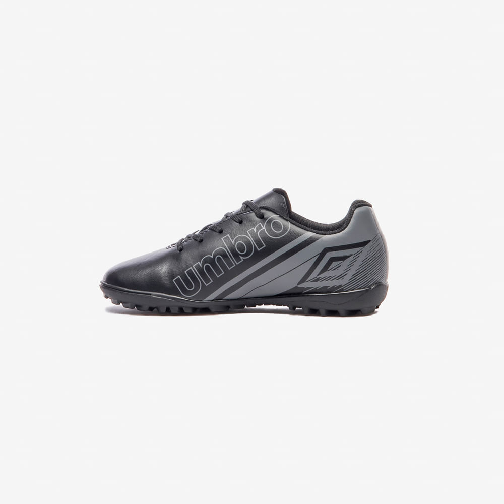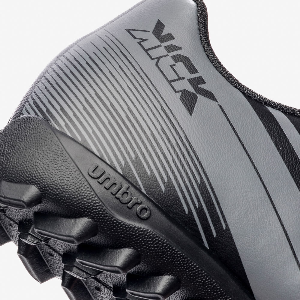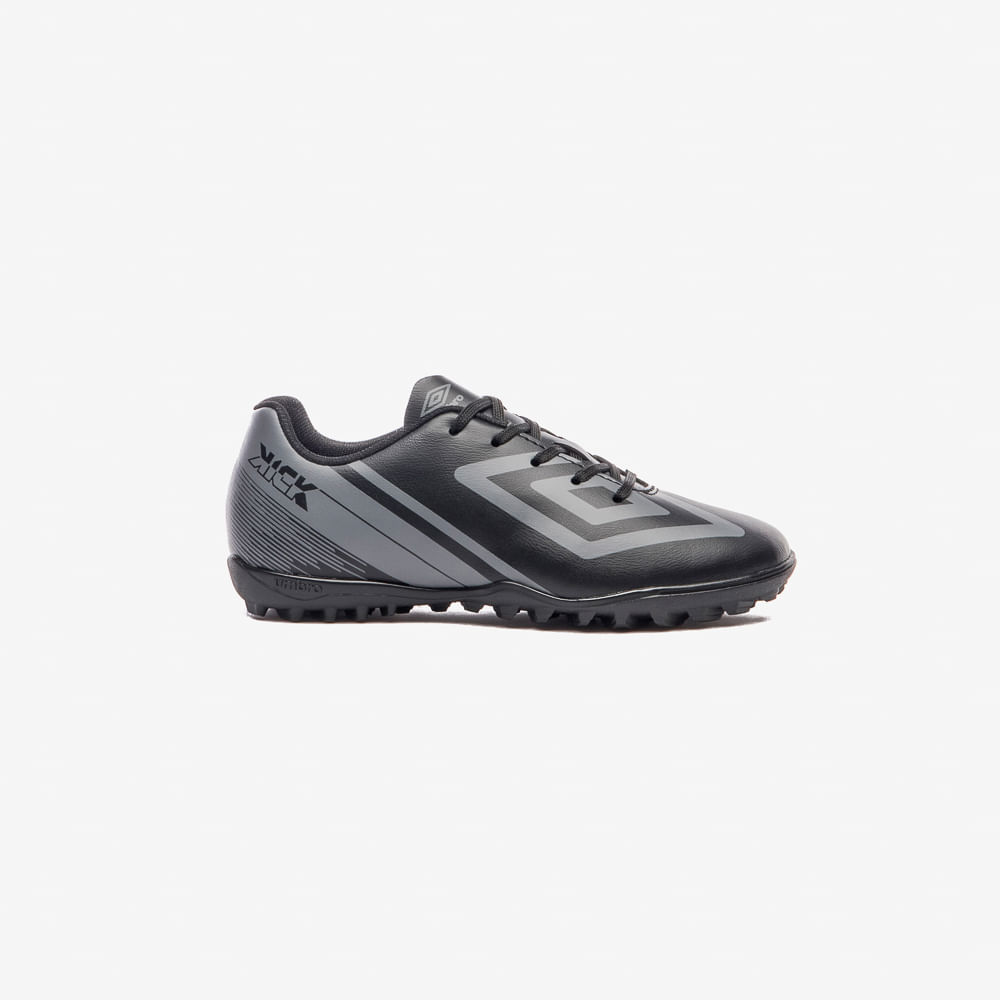 A Chuteira Society Umbro Kick Jr. é um modelo de entrada, ideal para jogadores iniciantes que buscam um design marcante. O cabedal em material laminado traz grafismo linear e Diamante Umbro estilizado em destaque na parte frontal. Conta com palmilha interna macia em EVA forrada em tecido e solado HG em PVC, com sistema de travas em barra e chevron para tração nas quadras de society.