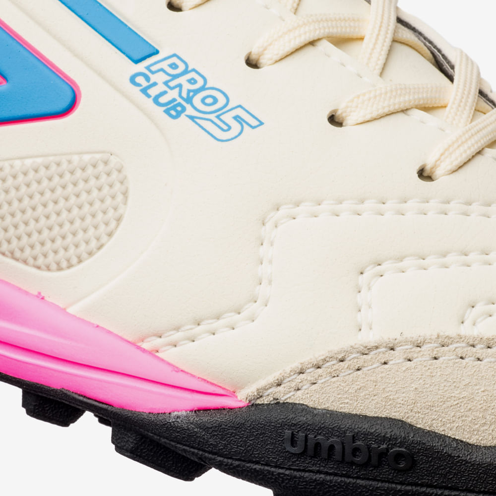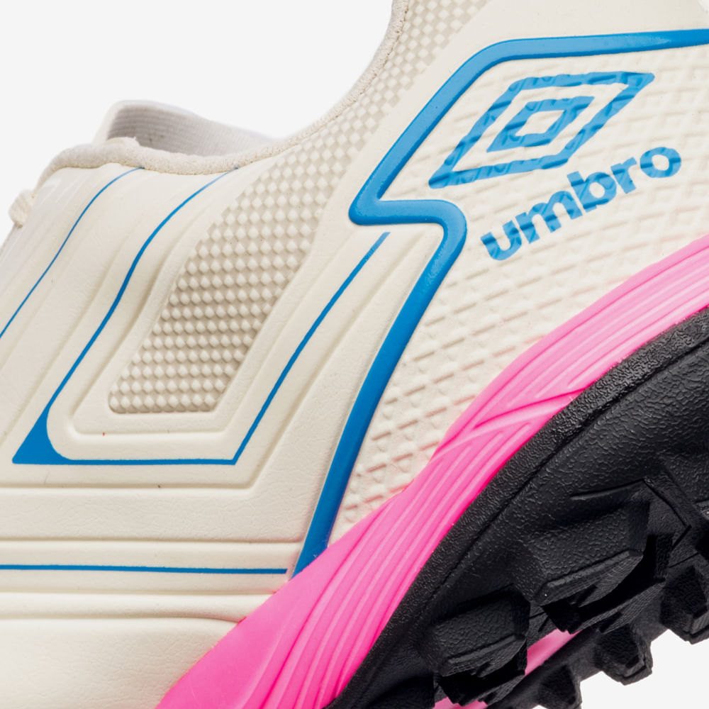 A Chuteira Society Umbro Pro 5 Bump Club é uma versão aprimorada da Pro 5 Club para máxima performance. O cabedal assimétrico em material laminado traz textura emborrachada, combinando detalhes em alta frequência, serigrafia tricolor e acabamento em verniz. A tecnologia BUMP na palmilha interna garante amortecimento e retorno de energia, enquanto o solado HG, com entressola em EVA e soleta em TPU, proporciona tração e estabilidade em cada jogada.