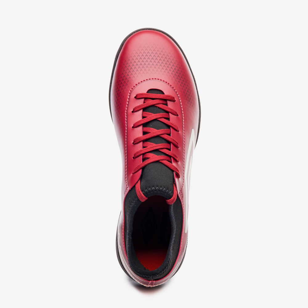 A Chuteira Society Umbro Top Speed League oferece sensibilidade ao toque na bola e ajuste confortável. O cabedal assimétrico combina colarinho em tecido com elastano, laminado com grafismo e Diamante Umbro lateral. A meia de tecido com acabamento em debrum e cadarços garante ajuste preciso. Possui palmilha em EVA forrado e solado de society em PVC monocolor com travas posicionadas e costura de reforço frontal blaqueada.
