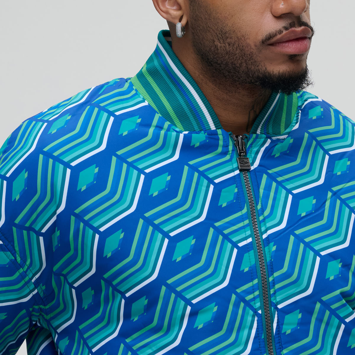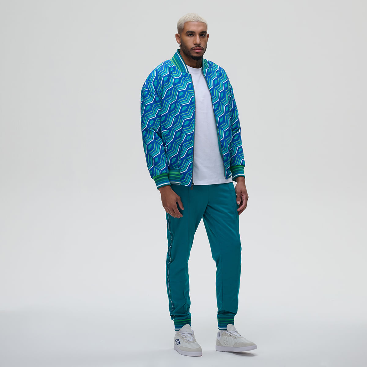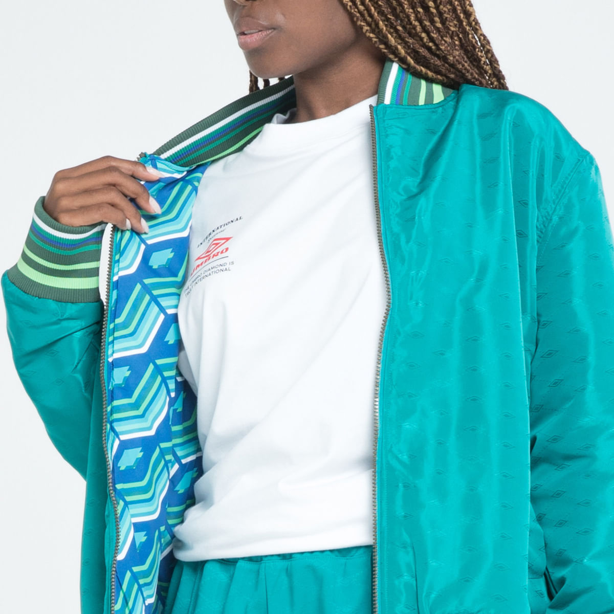 A Jaqueta Dupla Face Unissex Reversible Ramse é uma versão moderna de um clássico da Umbro. Confeccionado em poliéster lisa no lado A e com arte gráfica Diamond Gradient em Jacquard no lado B, o modelo possui modelagem comfort, mais ampla e solta no corpo. E conta com gola bomber, zíper frontal, bolsos laterais em ambos os lados, punhos e barra em retilínea listrada e logo centenário bordado no lado A.